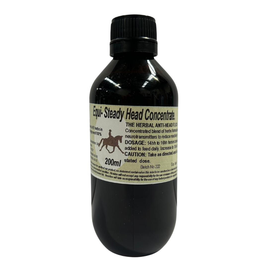 This product has been formulated after extensive research on some of the contributing factors that cause headshaking syndrome. We believe that this condition requires a multi-faceted approach to include modifying the diet, pasture, training and the use of herbs and supplements. This product consists of a range of anti-seratonic herbs, those that address heart rate, blood flow near the nasal passages and levels of stress hormones.
