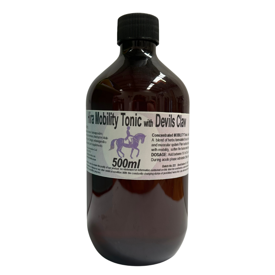 This concentrated herbal blend with Devil’s Claw, gingko and ashwagandha has been formulated in response to horses requiring a natural approach to addressing mobility issues that can help improve performance. This blend has adaptogenic and circulatory herbs that also act on the endocrine system. We have found that it enhances movement lightening and softening the dressage horse and making it amenable to training and less reactive to stimuli.Consists of procumbine, Quercitins, flavonoids, stachyose, Sitoindosides