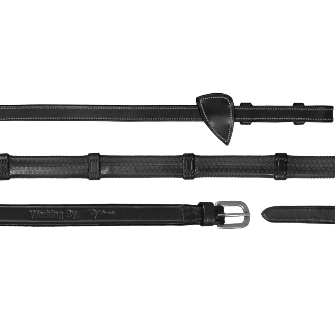 Working 1/2" Rubber Reins with 7 Leather Loops - Black Full